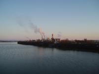 川の流れも穏やかさ。して工場の煙がなかなかいい味だしていますな。