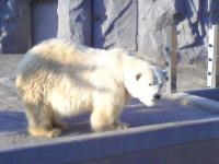 胴長短足の白熊ちゃんカワイイ(〃'∇'〃)ヒコパンは去年、旭山動物園を背に赤く染まった大雪山