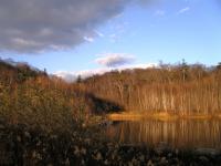 森林のある公園の池にて。